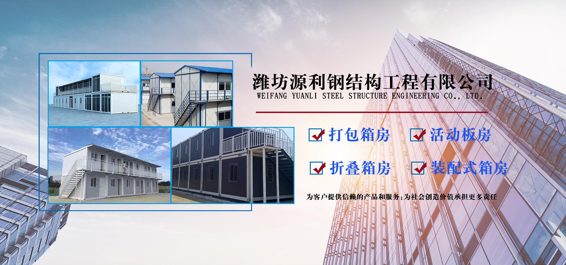 濰坊源利鋼結(jié)構(gòu)工程有限公司成立于2015年,是一家從事活動(dòng)房屋,鋼結(jié)構(gòu)設(shè)計(jì)、制作、安裝為一體的公司。公司坐落于風(fēng)景秀麗的藍(lán)寶石之鄉(xiāng)昌樂開發(fā)區(qū),占地約60畝,年加工生產(chǎn)能力到40萬平米,現(xiàn)已發(fā)展成本地較大的鋼結(jié)構(gòu)企業(yè),同時(shí)也已跨入集成房屋研發(fā)、推廣企業(yè)行列。公司配備了全套的箱房流水線生產(chǎn)設(shè)備,包含了全自動(dòng)冷彎成型設(shè)備、流水自動(dòng)涂裝線、沖壓型材生產(chǎn)線以及全套的配套設(shè)備,標(biāo)準(zhǔn)化、模具化生產(chǎn)加工,年生產(chǎn)5000套打包箱,產(chǎn)品保障。 公司主要產(chǎn)品有:鋼結(jié)構(gòu)工程加工、制作、安裝;各類活動(dòng)板房、打包箱房、裝配式箱房、折疊箱房、圍擋、料棚、異型H型鋼、屋面板、墻面板、樓承板,C型鋼,Z型鋼;馬路隔離護(hù)欄等相關(guān)產(chǎn)品。